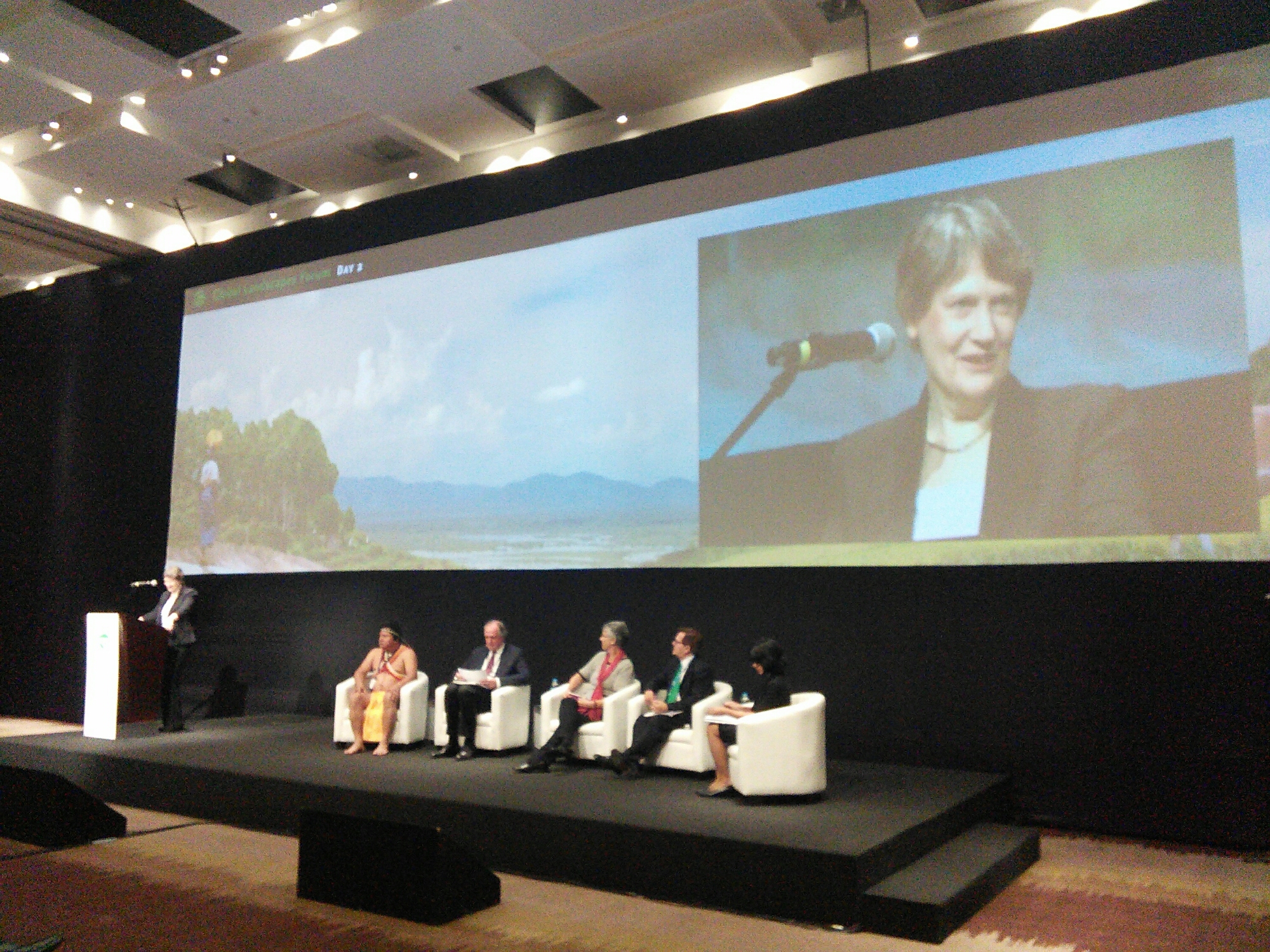 En el foro tuvimos el placer de escuchar las palabras de la señora Helen Clark del PNUD. Parte de su discurso lo podemos encontrar en el canal de YouTube de @larutadelclima = @HelenClarkUNDP en Global Landscape Forum: http://youtu.be/_GblYy96HsI